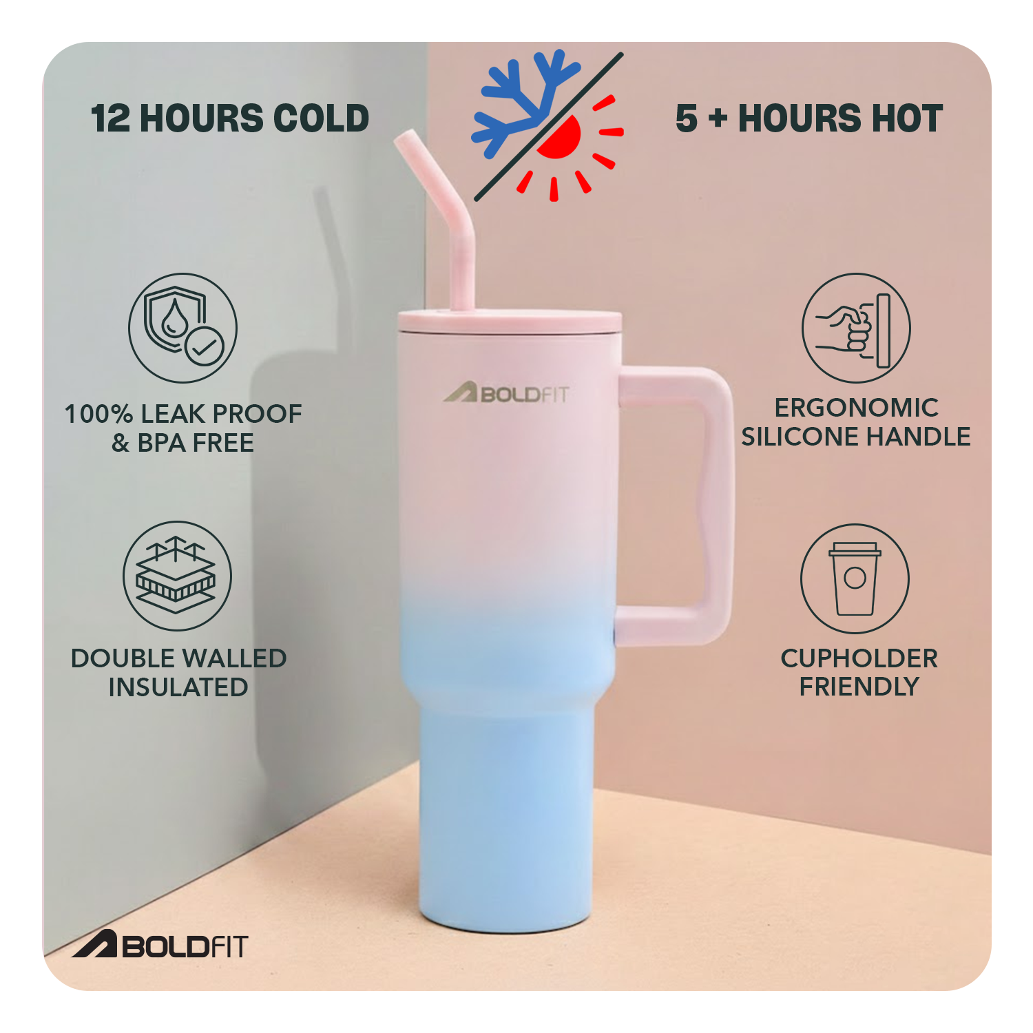 Thanks to double-wall insulation, it keeps drinks hot for over 5 hours and cold for up to 8 hours.